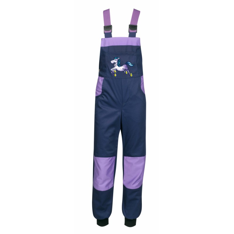 Lastnosti: Naramnice so prilagodljive in elastične, na ledvičnem delu je všita elastika, hlače imajo dva spodnja žepa spredaj in dva zadaj, prsni žep pa je potiskan z barvastim preslikačem. Ledveni del je pokrit, na nogah so našiti patenti za bojši oprijem ter prilagodljivost na velikost hitro rastočega malčka. Elastika omogoča, da so malčku hlače prav dalj časa, saj preprečuje, da bi malček hodil po hlačnicah, četudi so mu hlače malo prevelike.