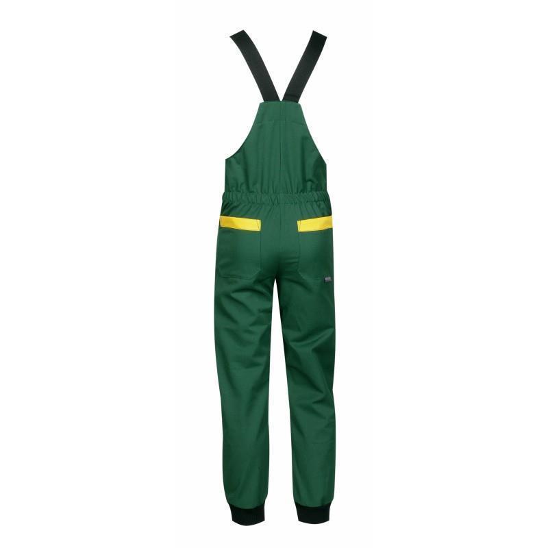 Lastnosti: Naramnice so prilagodljive in elastične, na ledvičnem delu je všita elastika, hlače imajo dva spodnja žepa spredaj in dva zadaj, prsni žep pa je potiskan z barvastim preslikačem. Ledveni del je pokrit, na nogah so našiti patenti za bojši oprijem ter prilagodljivost na velikost hitro rastočega malčka. Elastika omogoča, da so malčku hlače prav dalj časa, saj preprečuje, da bi malček hodil po hlačnicah, četudi so mu hlače malo prevelike.